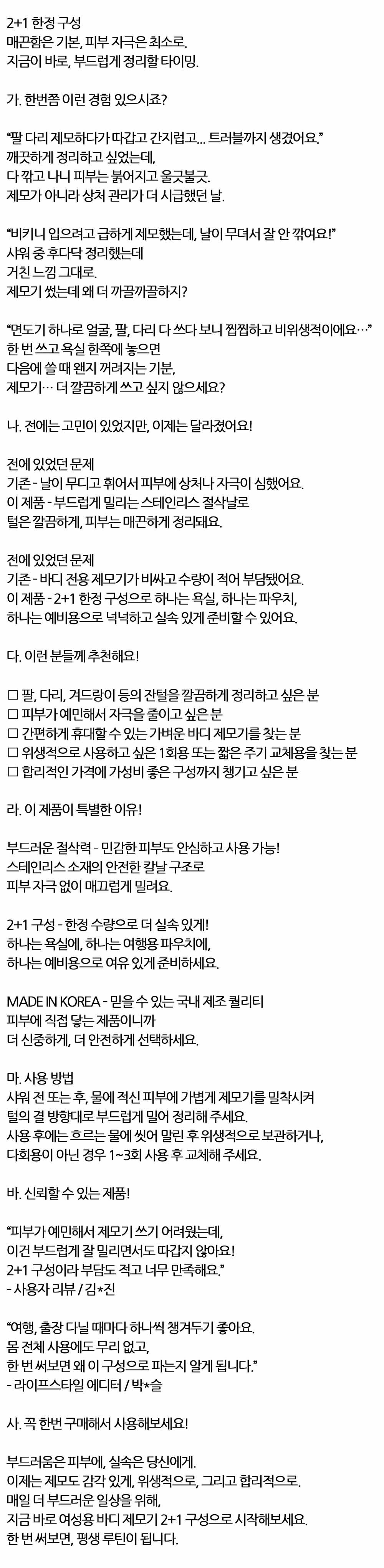 털 깔끔하게 피부는 매끈하게 정리돼요 바디제모기 3P