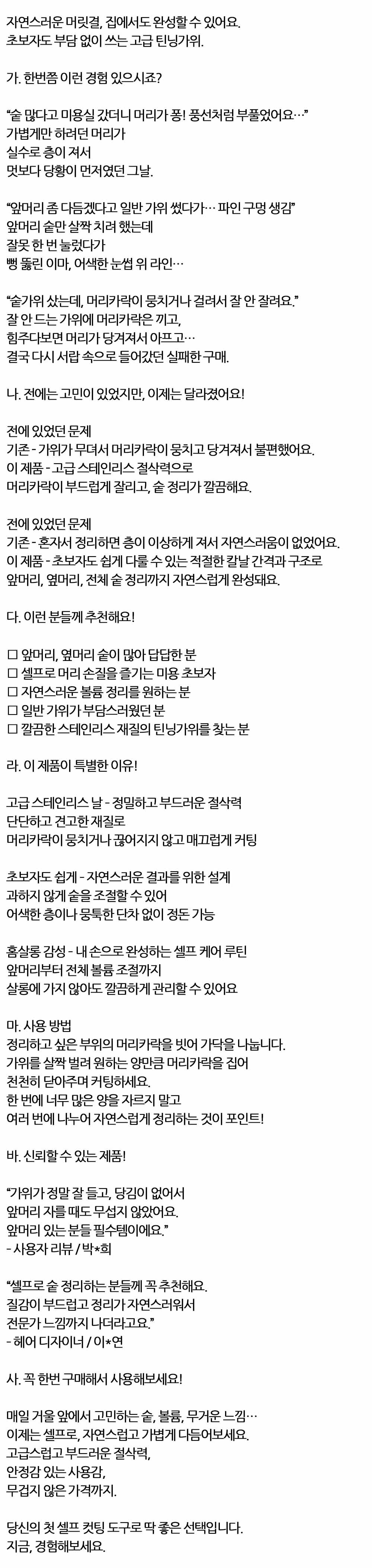 앞머리 옆머리 전체 숱정리 자연스럽게 완성 숱가위