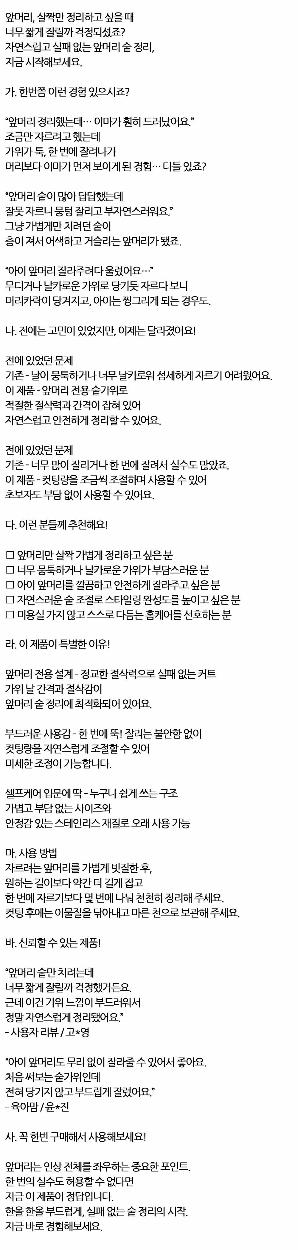 앞머리 살짝 다듬을 건데 미용실까지 가기엔 숱가위
