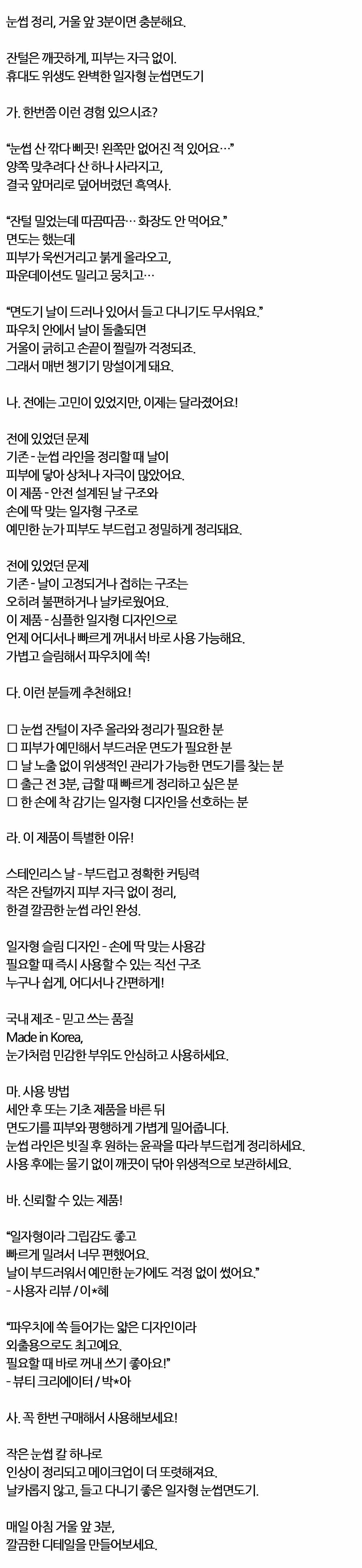 작은 잔털까지 깔끔한 눈썹 라인 완성 일자 눈썹칼 1P