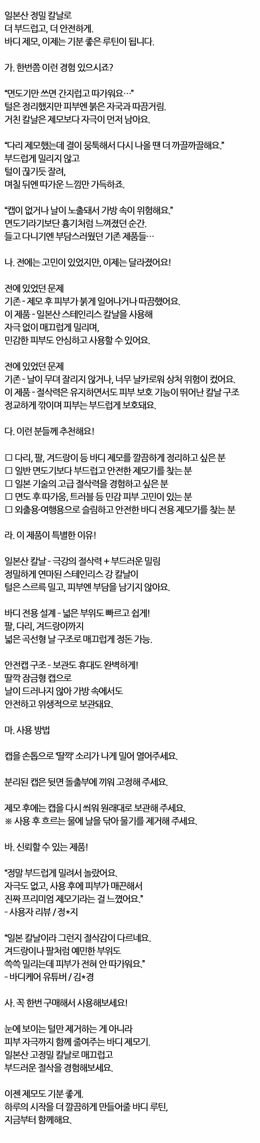 더 부드럽고 안전하게 일본산 정밀칼날 바디제모기 3P