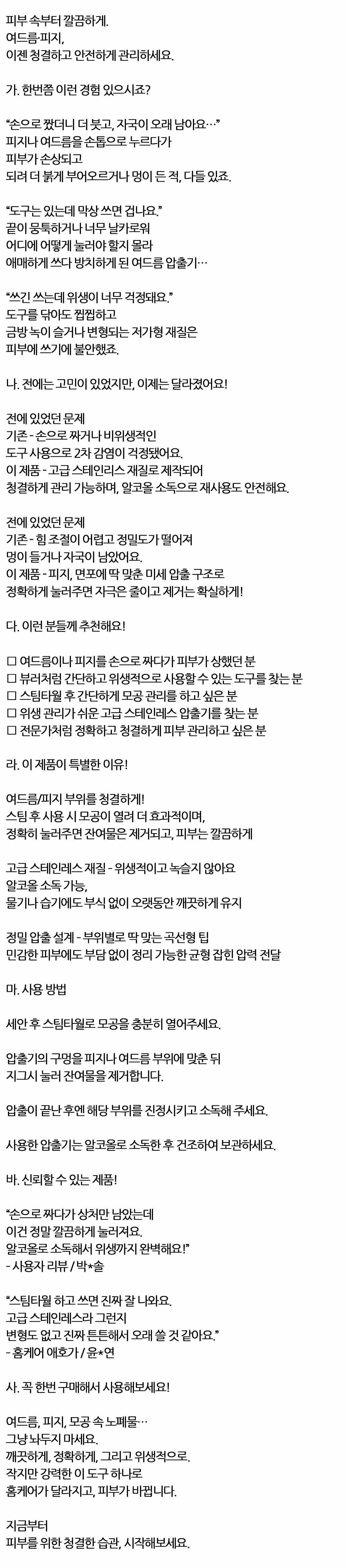 손으로 짰더니 붓고 자국이 남아요 스텐 피지 압출기