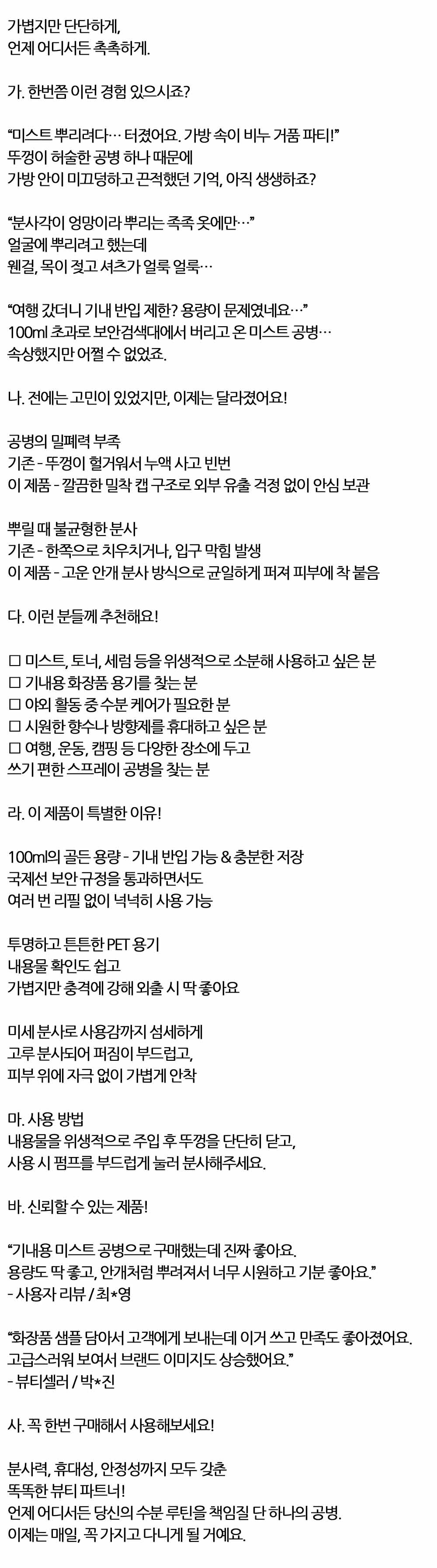 밀착 캡구조 유출 걱정없이 안심 스프레이용기 100ml