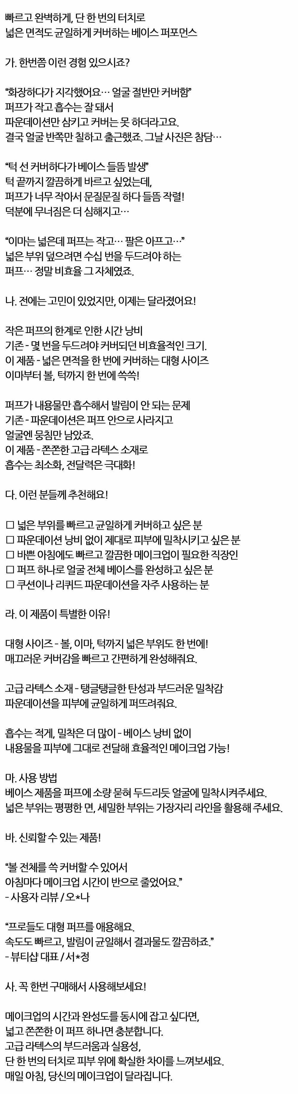 넓은면적 빠른커버력 부드러운 밀착감 라텍스 퍼프 대