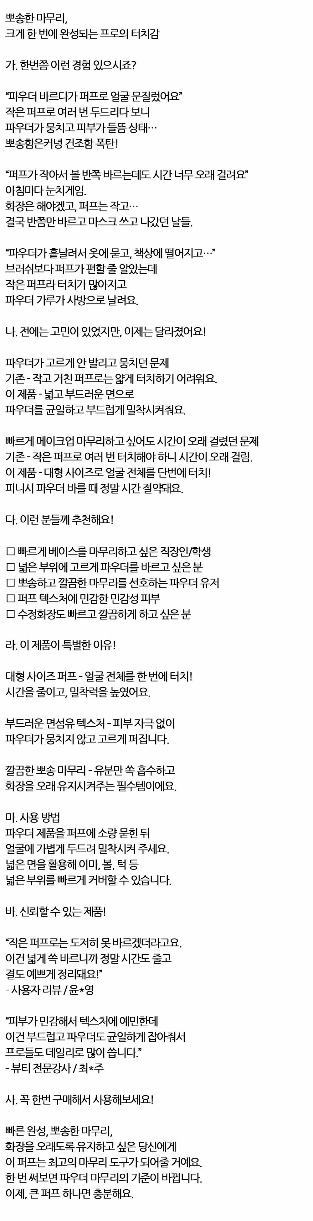 크게 한 번에 완성되는 프로의 터치감 면분첩 대