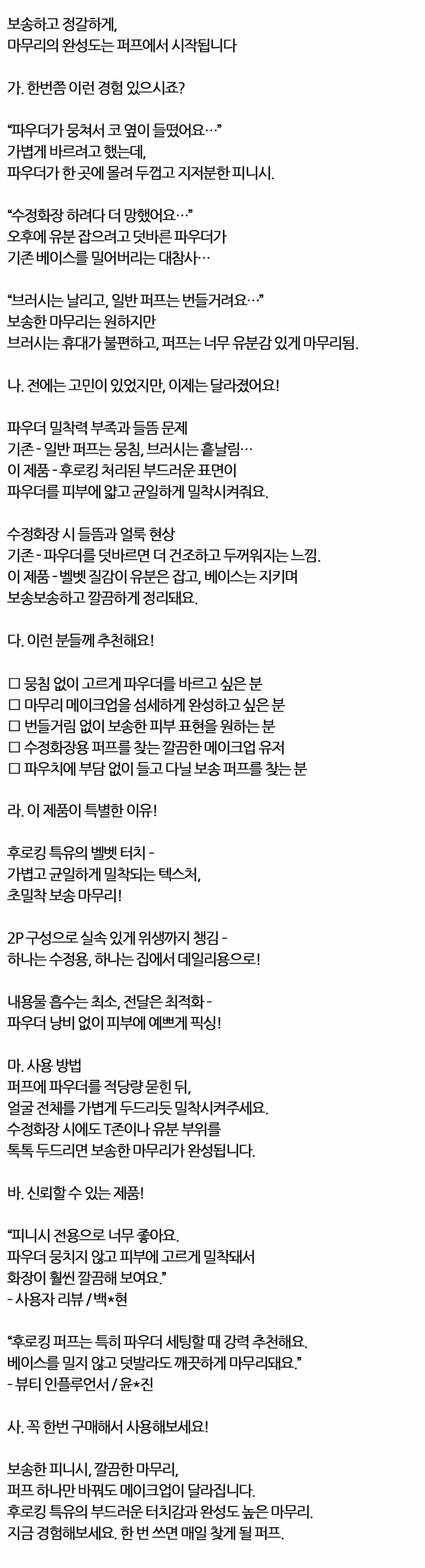 마무리의 완성도는 퍼프에서 시작 원형후로킹 퍼프 2P