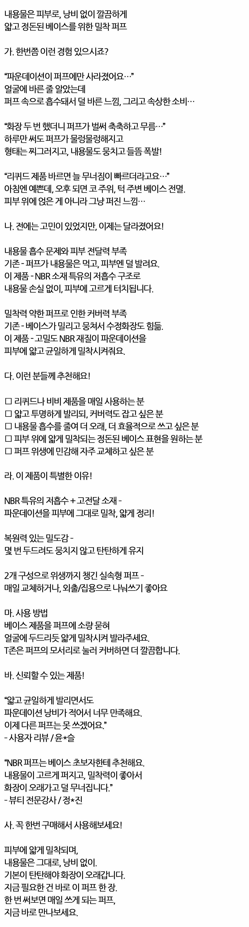 얇고 정돈된 베이스를 위한 밀착 원형 NBR 퍼프 2P