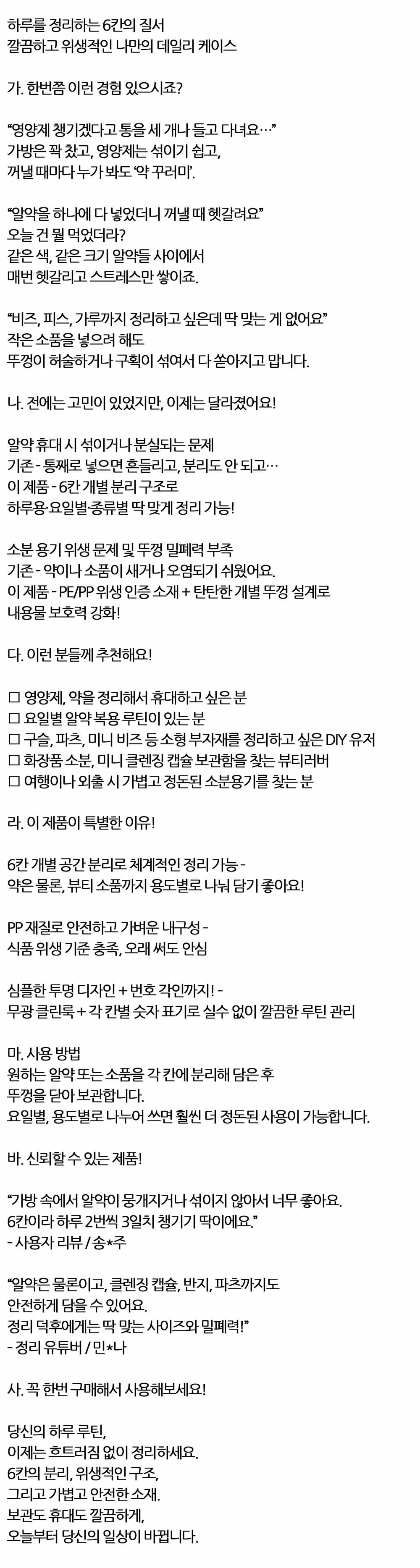 하루용 요일별 종류별 딱 맞게 정리 6칸 알약 케이스