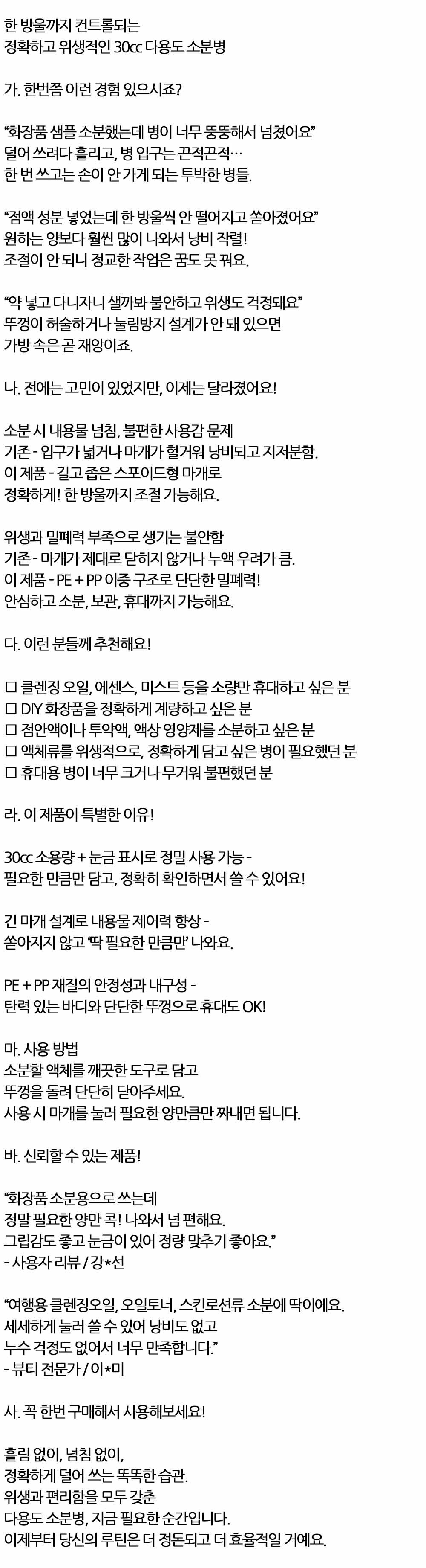 금 표시로 정밀 사용 가능 다용도 소분병 30cc 2P