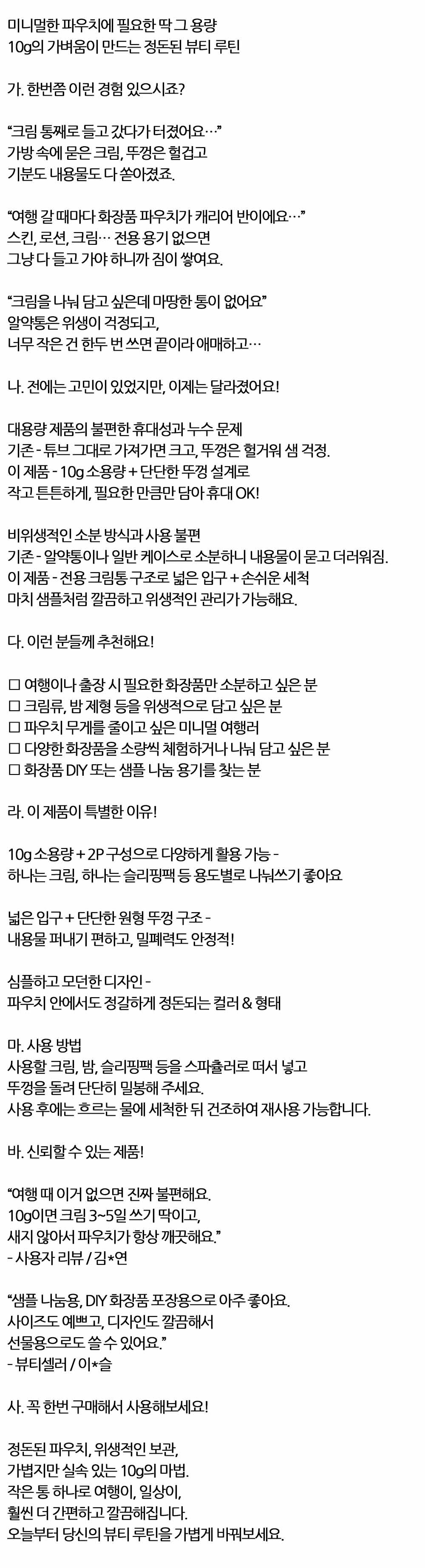 가벼움이 만드는 정돈된 루틴 리필용기 크림통 10g 2P