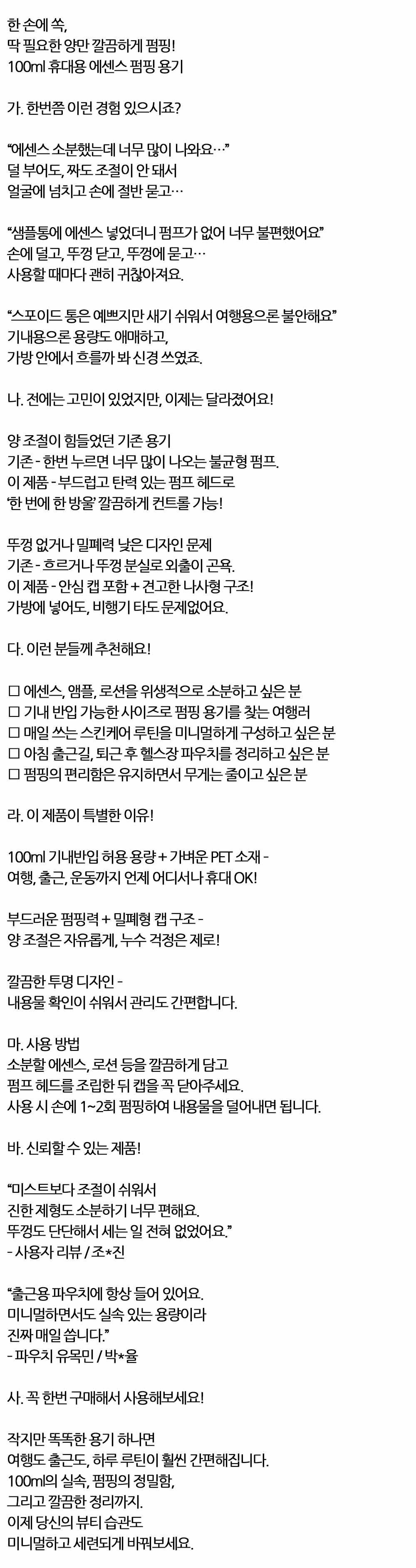 딱 필요한 양만 깔끔하게 펌핑 에센스 용기 100ml
