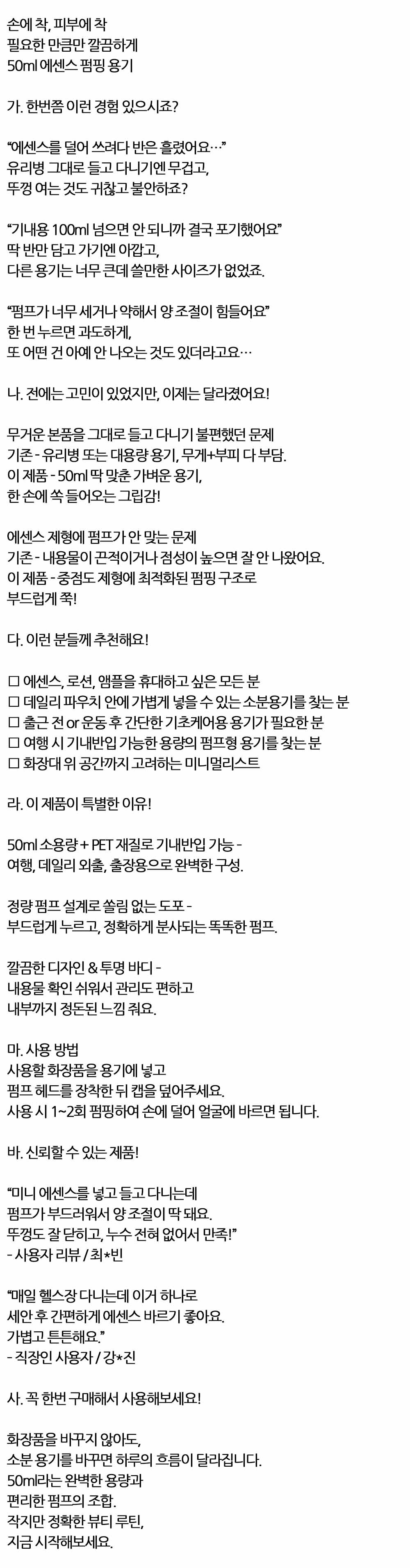 펌프 부드러워서 양 조절이 딱 돼요 에센스 용기 50ml
