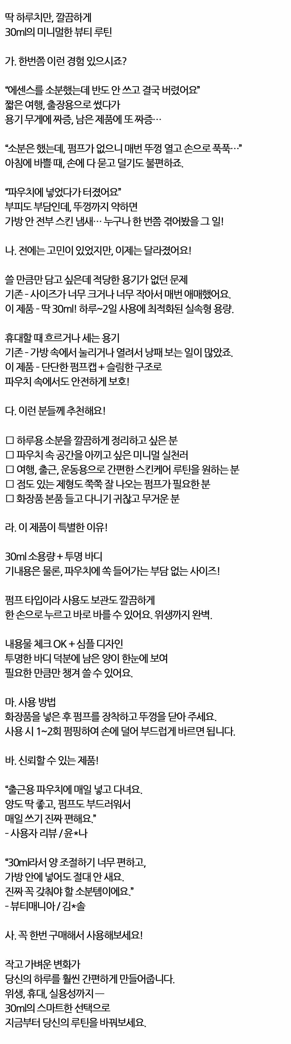딱 하루치만 깔끔하게 펌프 타입 에센스 용기 30ml