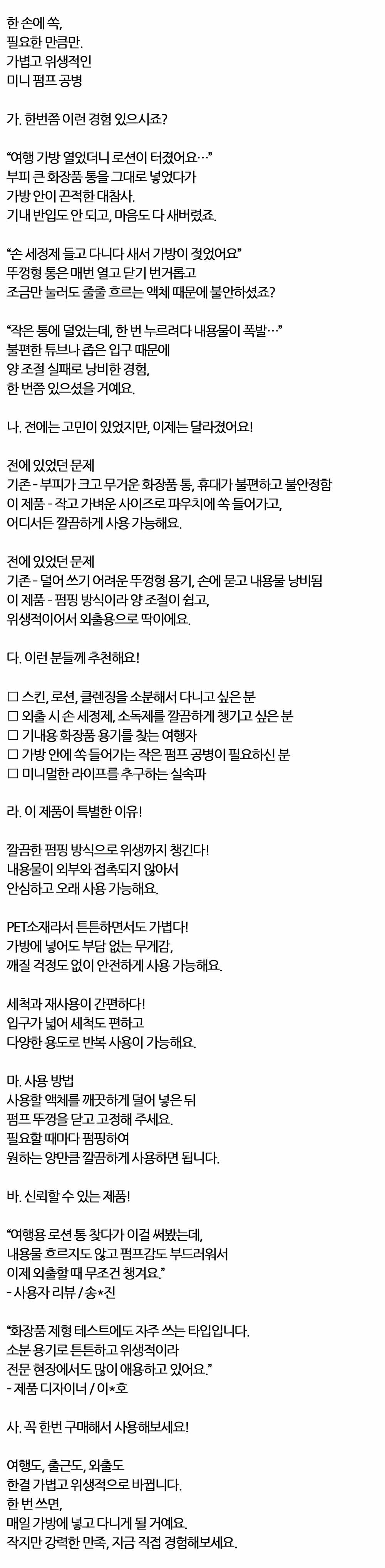깔끔한 펌핑 방식으로 위생까지 챙긴다 미니공병 50ml
