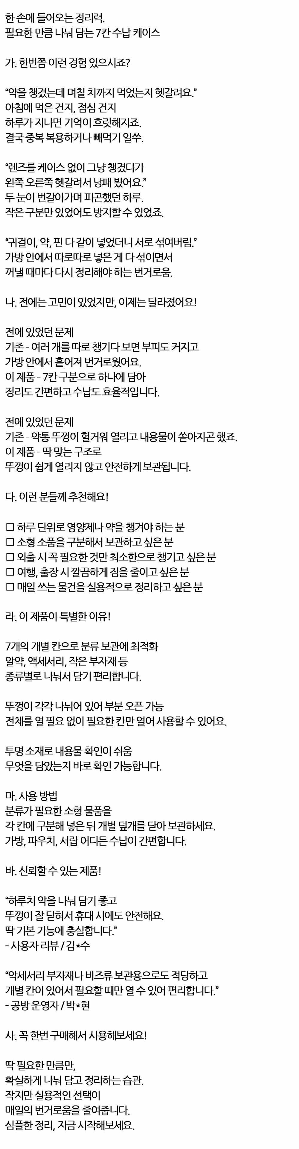 정리도 간편하고 수납도 효율적입니다 휴대용 7칸통