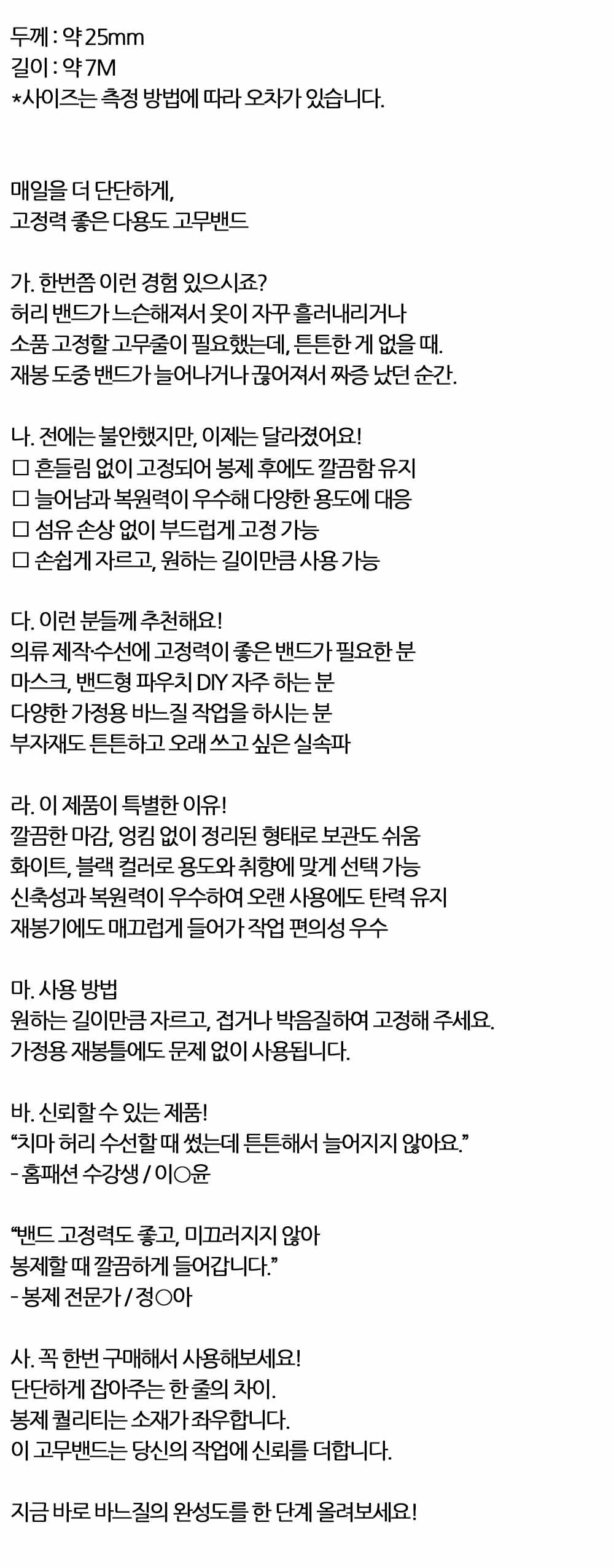 의류 제작 수선 고정력 좋은 고무밴드 25mm 10봉 블랙