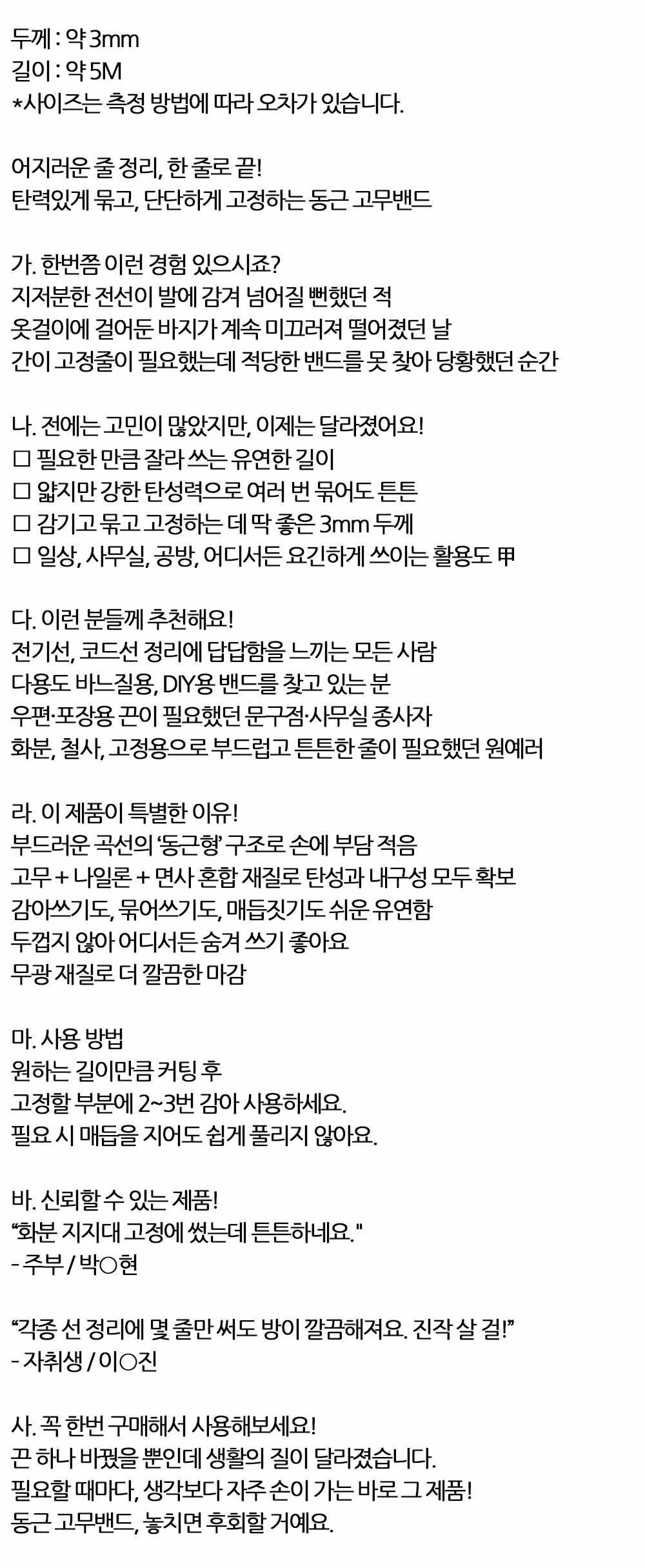 탄력있게 묶고 단단하게 고정하는 고무밴드 블랙 10봉
