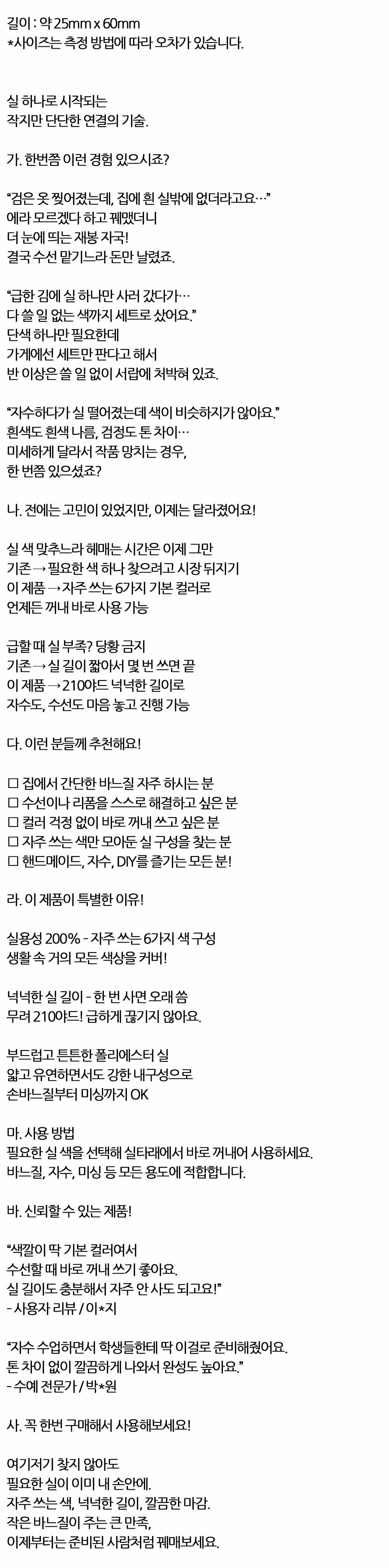 수선할때 바로 꺼내 쓰기 좋아요 6가지 색상 재봉사실