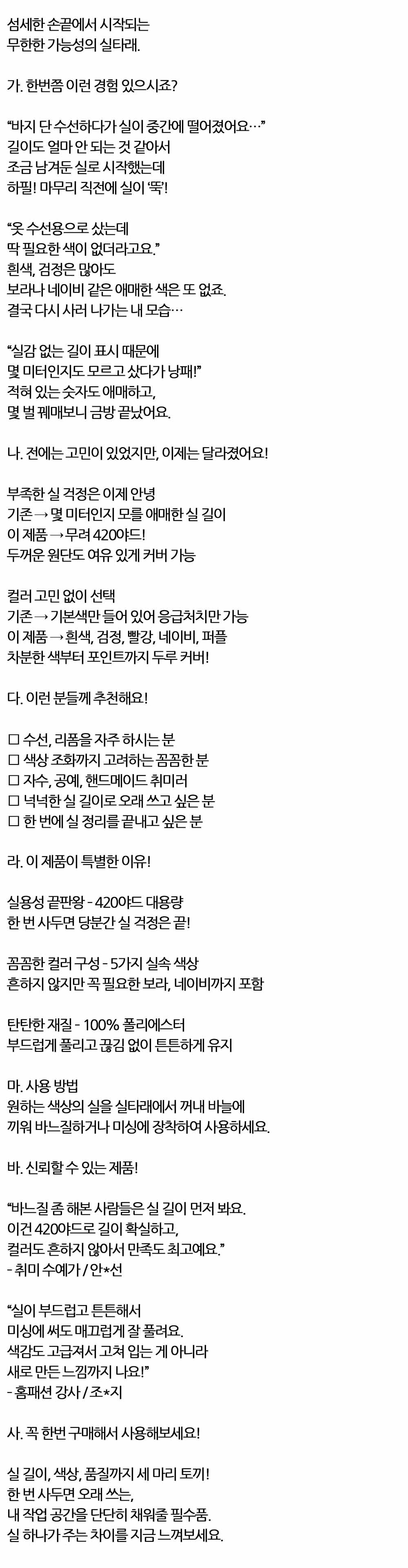 한 번 사두면 당분간 실 걱정은 끝 수예 재봉사 실 5P