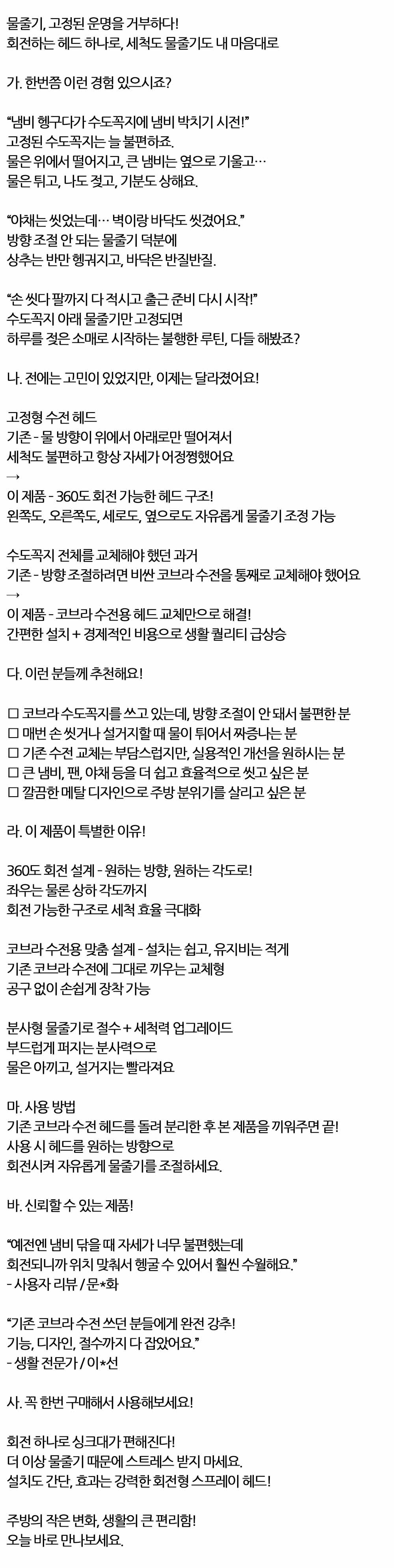 원하는 방향 360도 회전가능한 코브라수전 헤드교체용