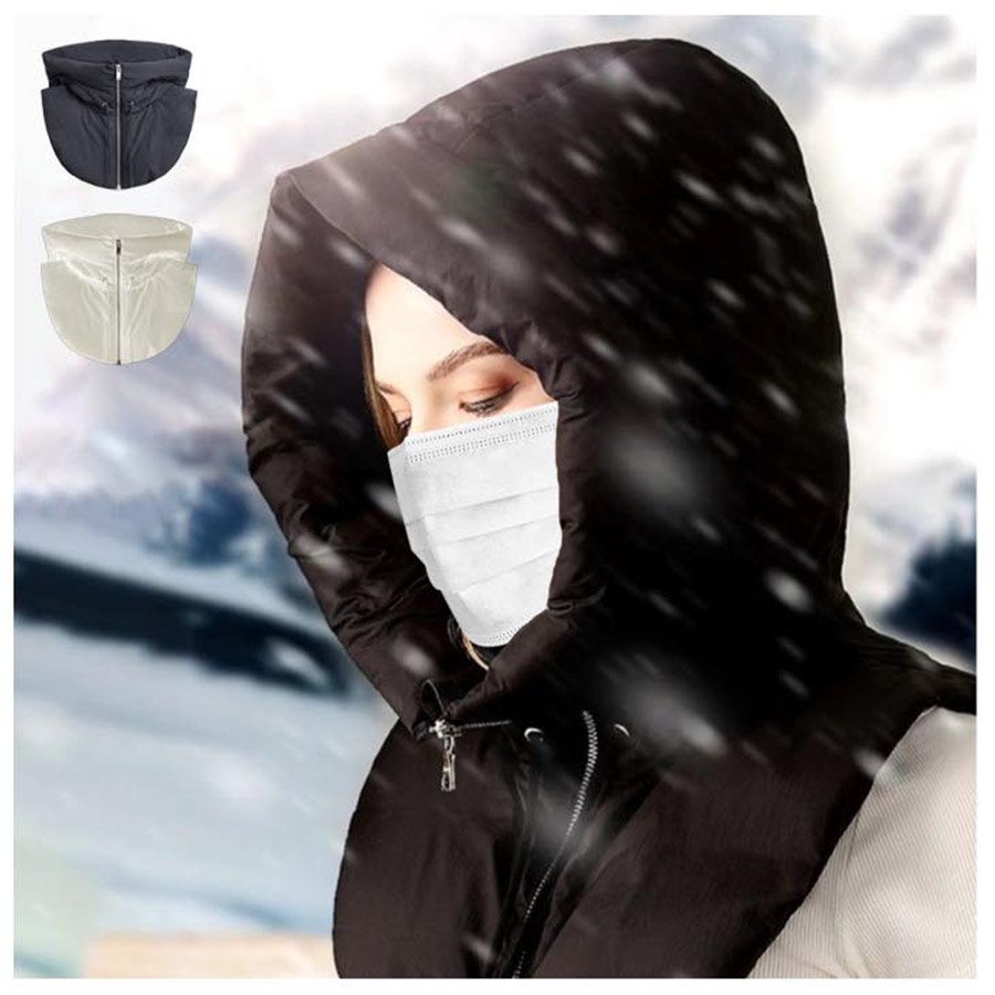 패딩 바라클라바 후드 블랙 / 화이트 어깨 덮개 지퍼 스트링 보온성