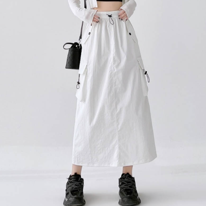 힙한 카고포켓 캐주얼 여성 스커트 밴딩 롱치마