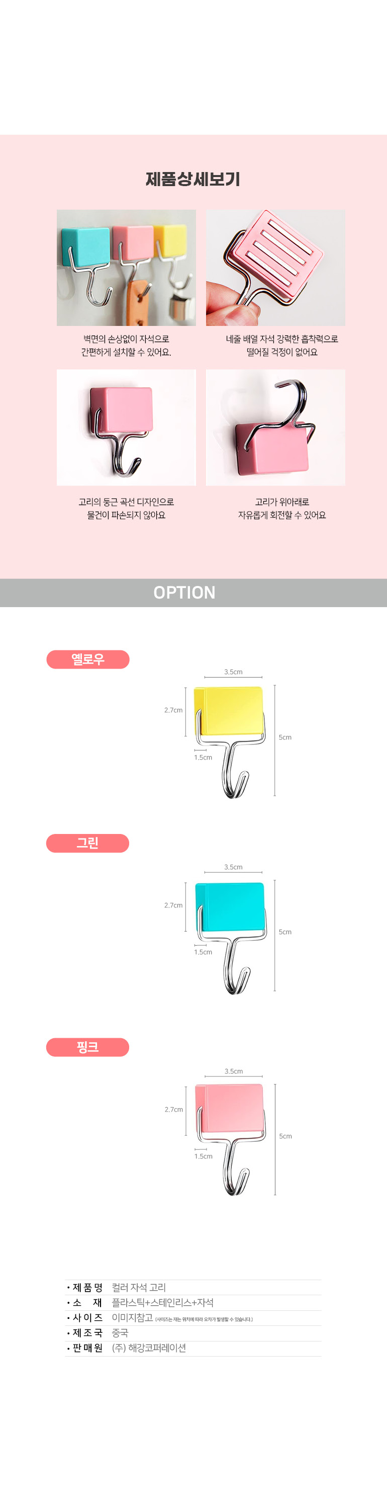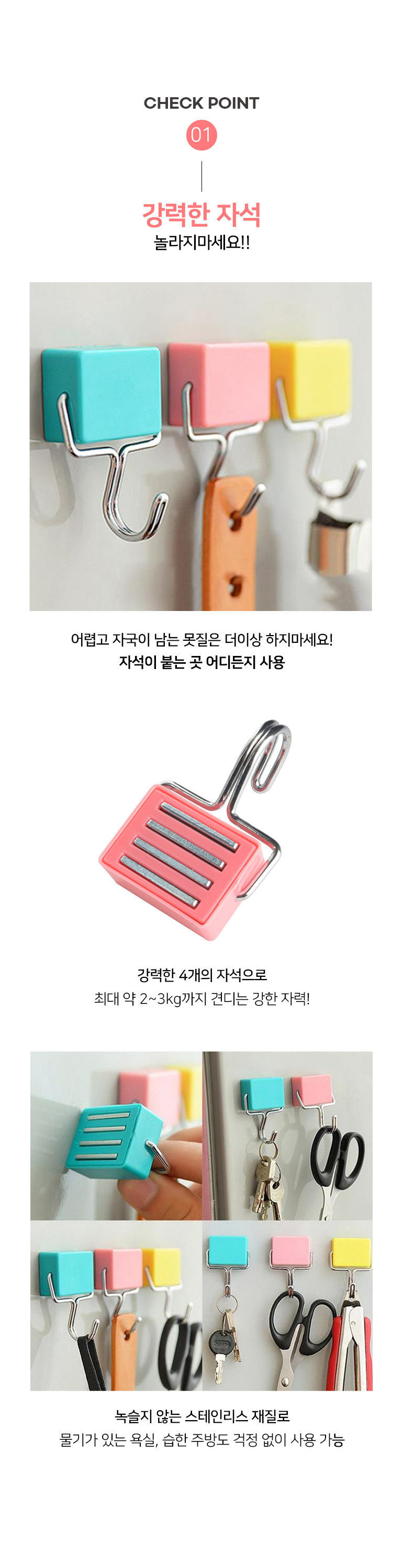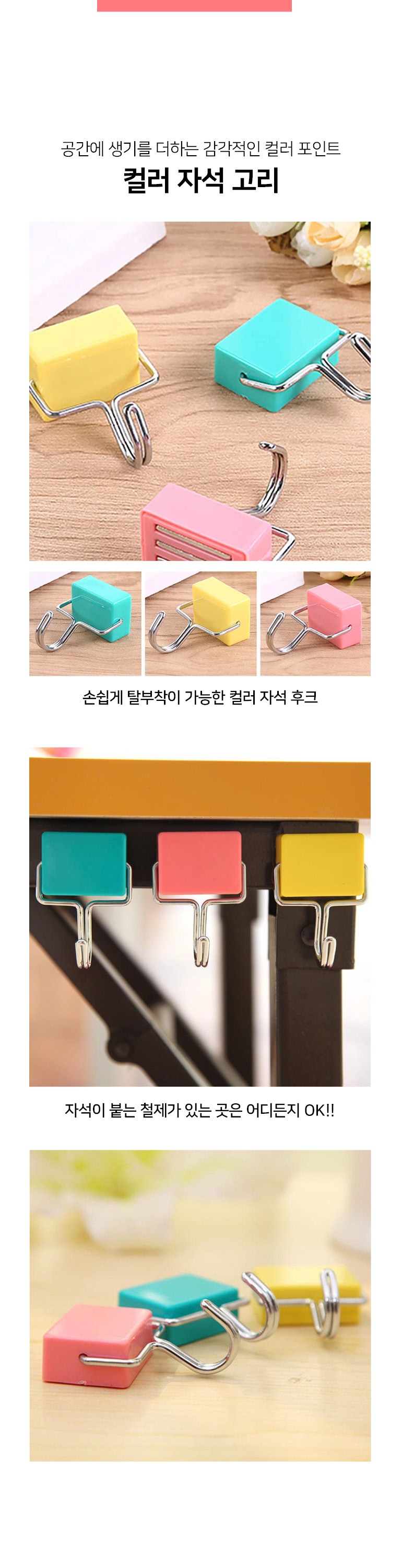컬러 자석 고리 후크 걸이 주방 벽걸이 소품 벽고리 벽후크 마스크 가방 현관문 도어 모자