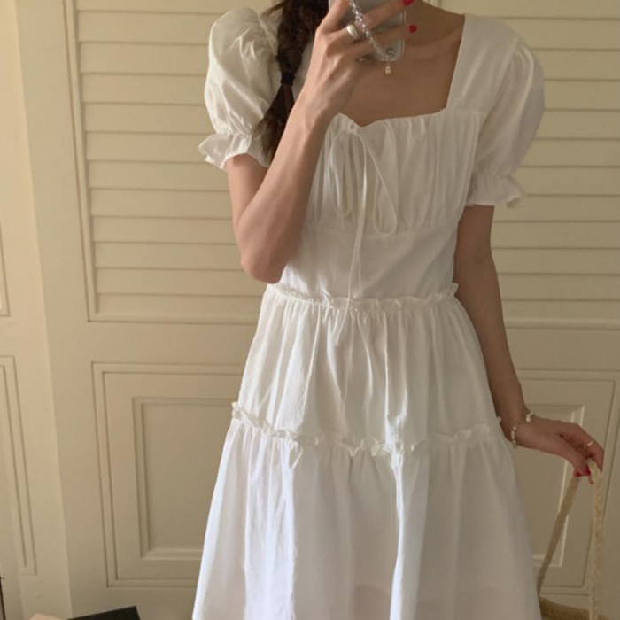 발랄하고 풍성한 캉캉 드레스 퍼프숄더 롱원피스