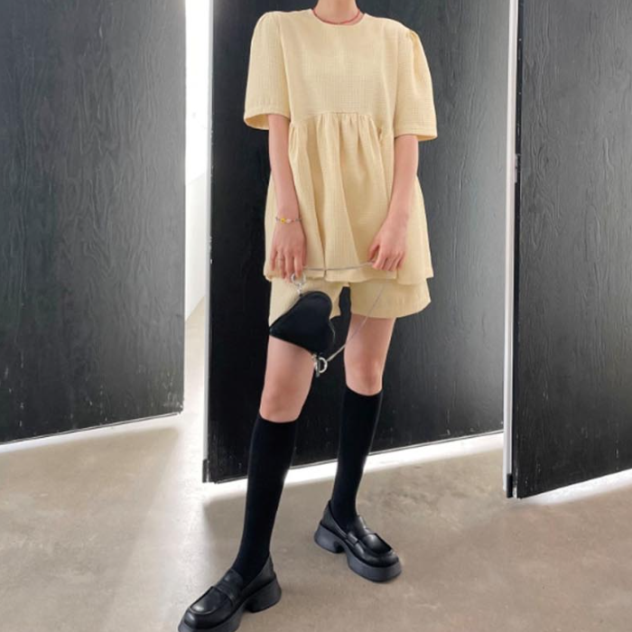 세련된 프릴 여성 코디세트 블라우스 바지 상하복