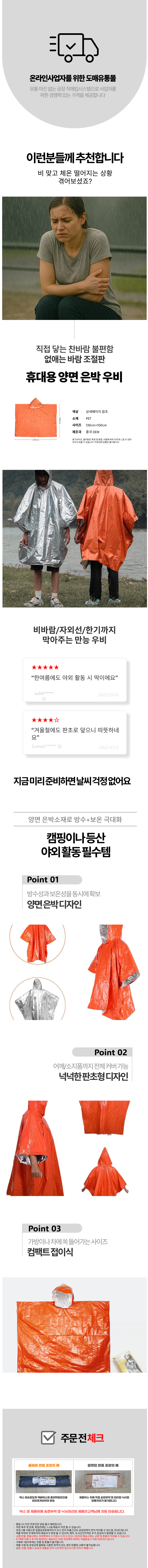 휴대용 캠핑 방수 은박 양면 레인코트 백패킹 우의
