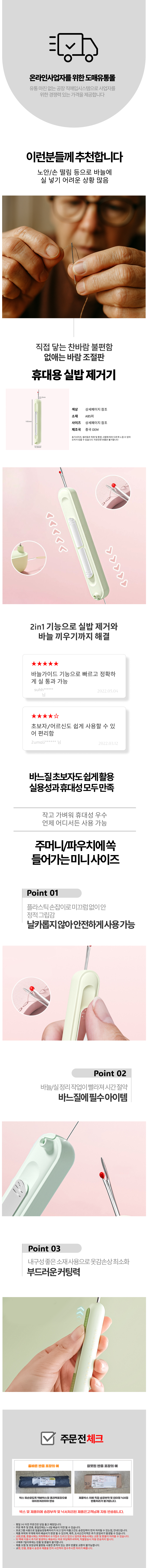 인체공학 실밥 따개 튿기 꿰기 바늘 가이드 도구용