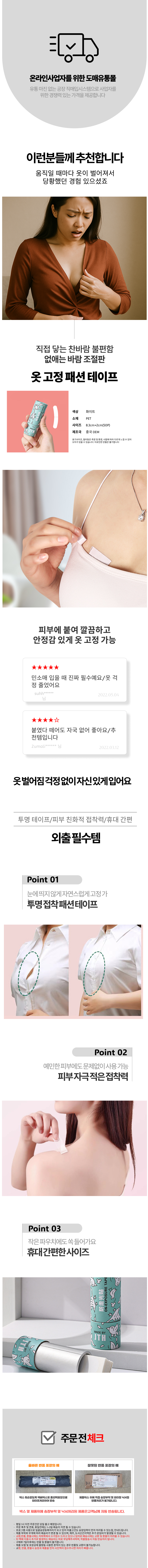 의류 수선 옷 붙이는 방수 노출 방지 고정 테이프