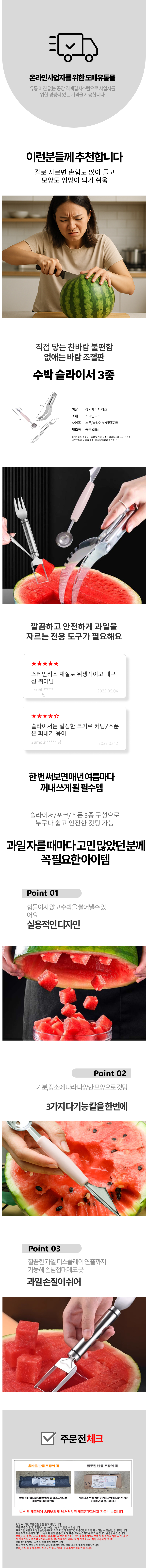 수박 캠핑용 슬라이서 3종 스테인리스 멜론 칼 도구