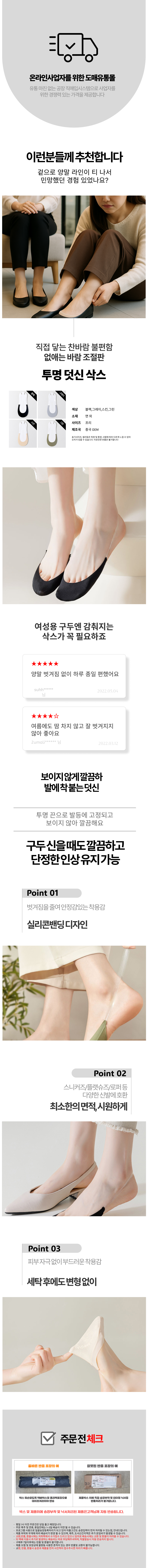 실내 통기성 투명 구두 삭스 얇은 여자용 양말 세트