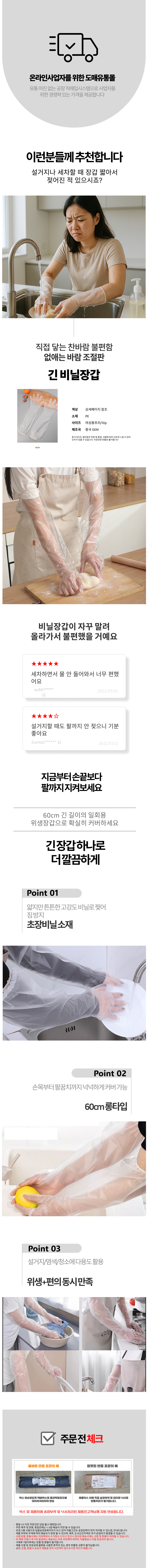 주방 손보호 김장용 손목긴 비닐 긴장갑 60CM용