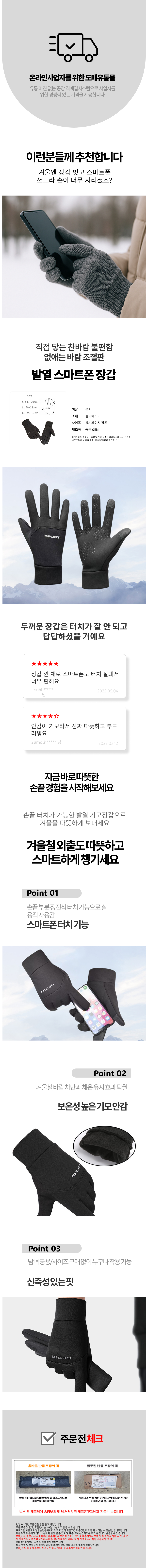 레저 자전거 발열 장갑 기모 방풍 슬림핏 선물용옷