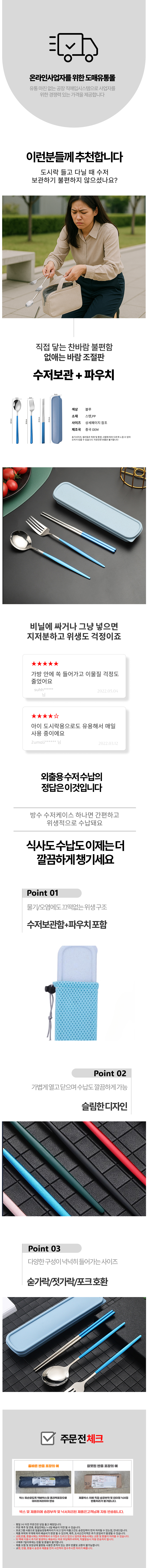 심플 컬러 방수 세척 등교용 필수템 휴대용 커트러리