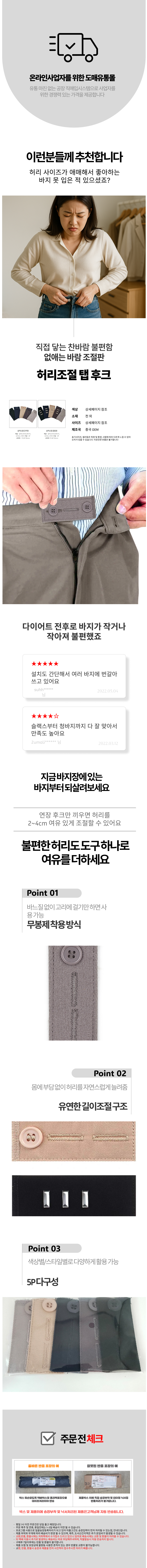 슬랙스 고무줄 청바지 의류 버튼 연장 셀프 허리조절