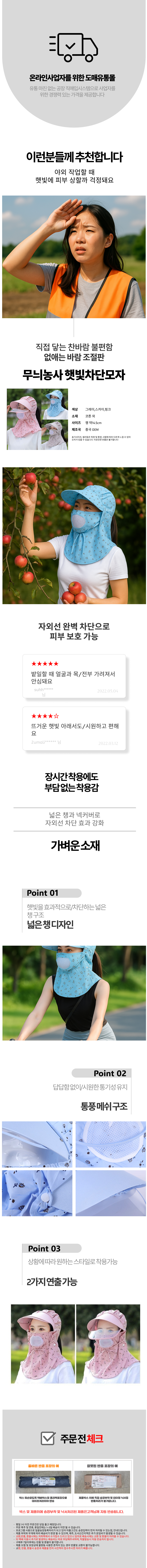 레트로 UV차단 모자 여자 작업 농모 모내기 농부모