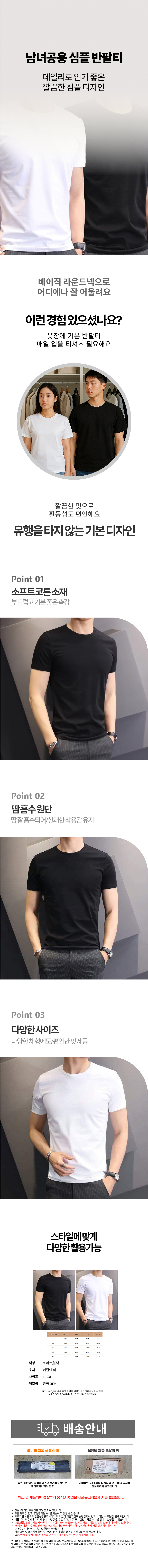 심플 빅사이즈 사계절 이너티 라운드 기본반팔