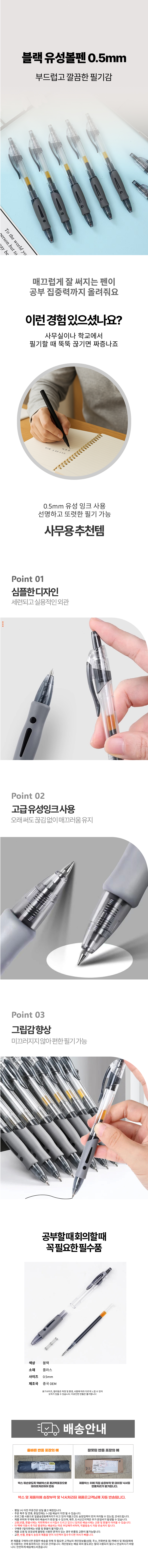 심플 블랙 얇은 볼펜 0.5mm 단체 사무실 학원 학교