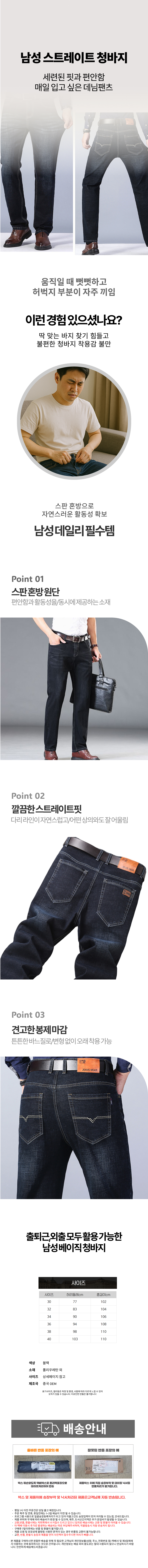 남자 청바지 블랙진 스트레이트핏 신축성 데님