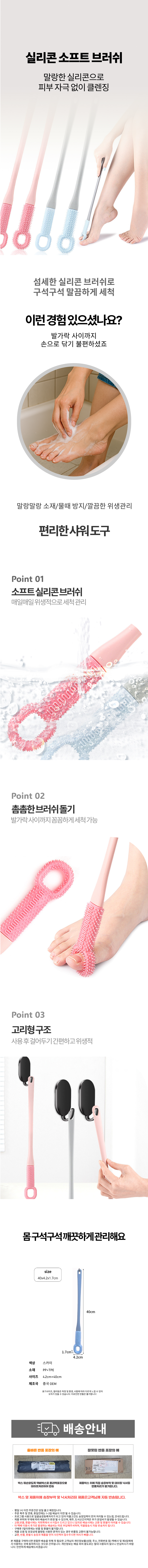 롱브러쉬 실리콘 반영구적 무좀예방 바디브러쉬