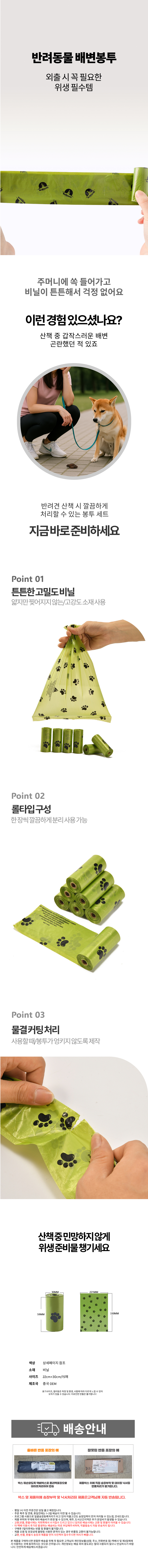 절취선 애완동물 배변봉투 똥 캠핑용 산책용 휴대용