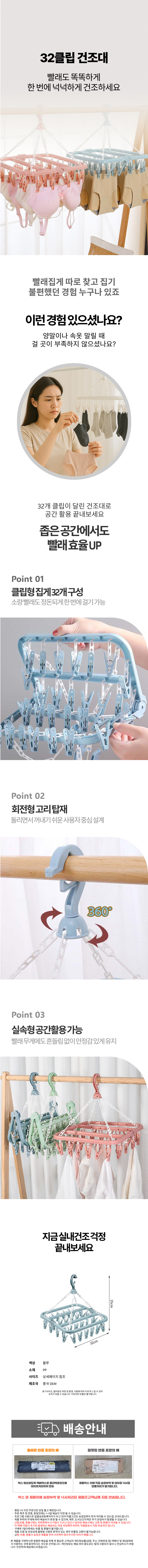 32클립 건조대 손수건 건조대 신생아 속옷 기숙사