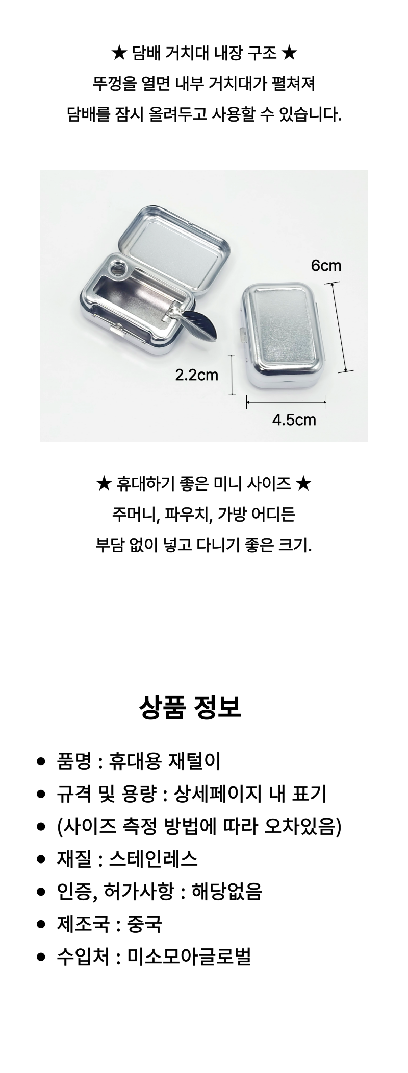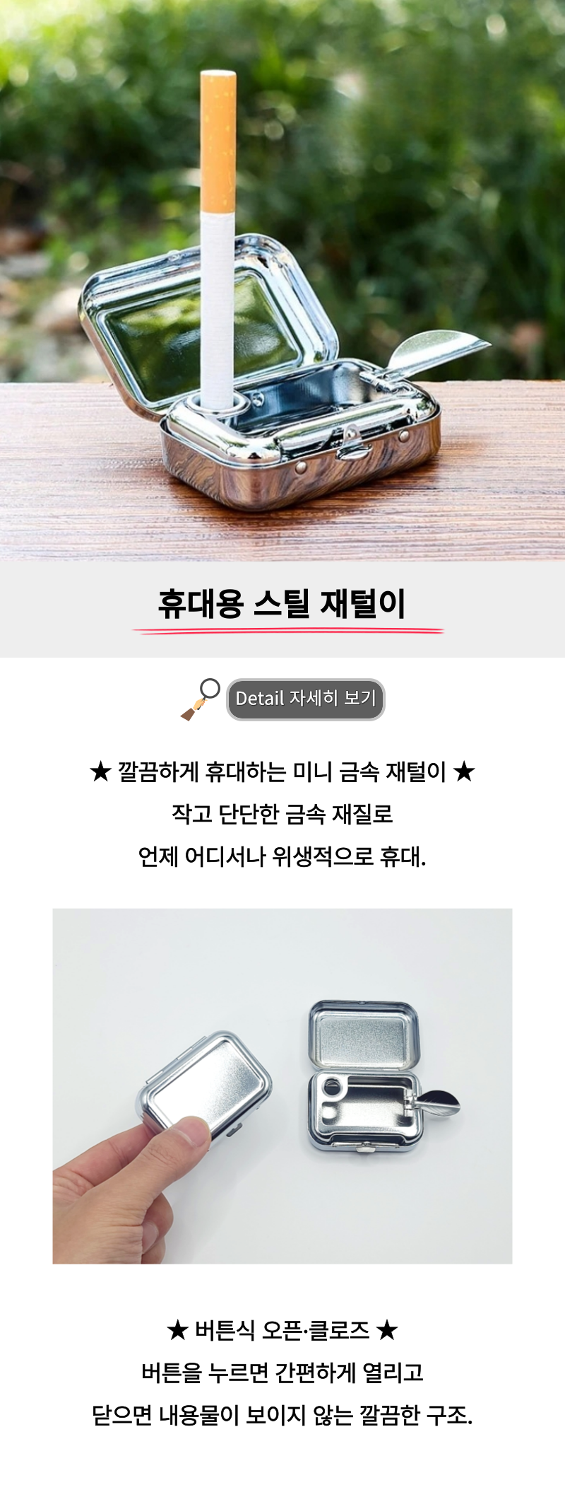 • 휴대용 스텐 재떨이 일본 여행 재털이 개인 꽁초 담배 냄새차단 M50572