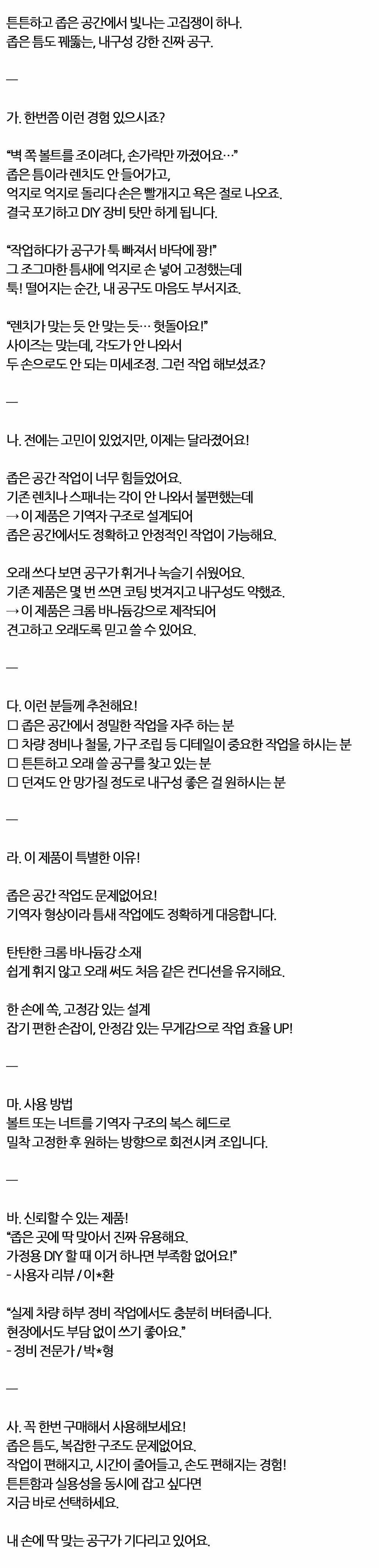 좁은 공간 작업도 문제없어요 ㄱ자 복스연결대 11mm
