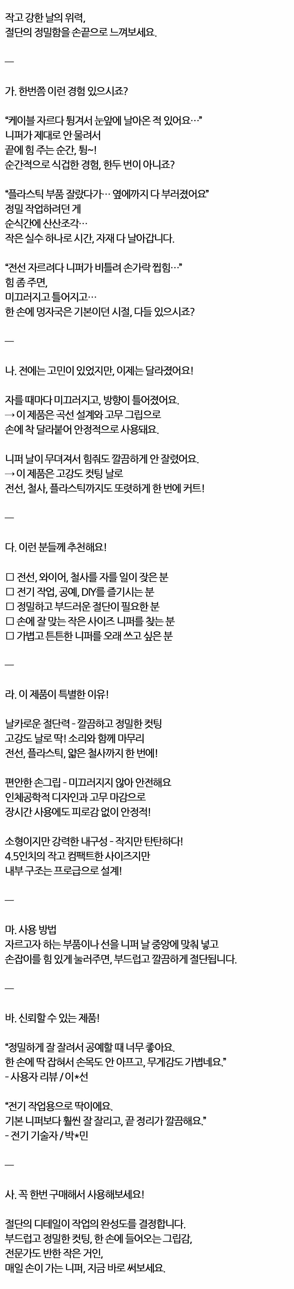 전선 철사 플라스틱까지도 또렷하게 커트 니퍼 115mm