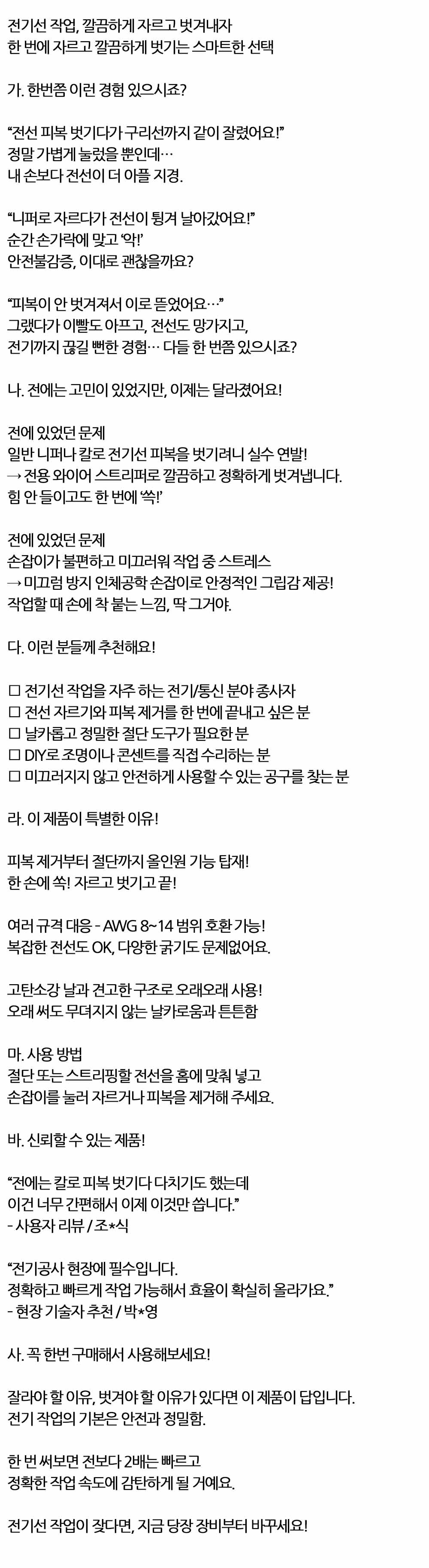 피복 제거부터 절단까지 올인원 전기선 가위 180mm