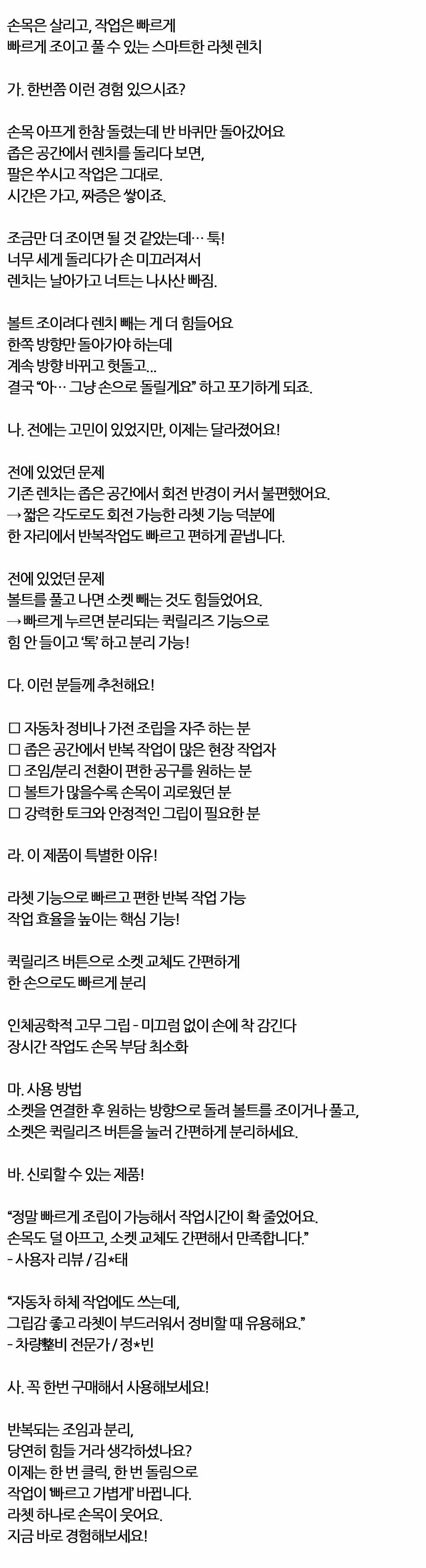 빠르게 조이고 풀 수 있는 스마트한 공구 라쳇 렌치